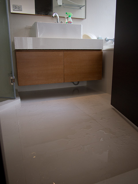これじゃモップで水を掃かない限り自然乾燥にはかなりの時間を要するよ・・・