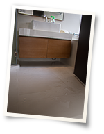 バスルームの床に水勾配が取られていないのか甘いのか、洗面の前で水溜りになる始末。
